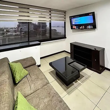Просторные Апартаменты Departamento Doble Con Vista A La Ciudad Y Rio расположены в 1 км от Рынка Артесаналь Гуаякиль МАГ. К услугам гостей гидромассажная ванна. LA PERLA Rueda Moscovita находится менее чем в 1 км в Гуаякиле.